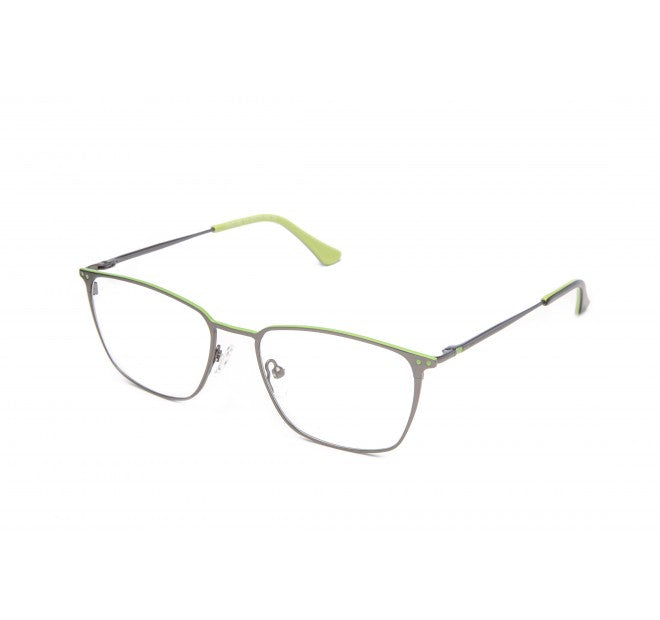 GAFA CON FORMA CUADRADA DE COLOR PLOMO Y VERDE.
