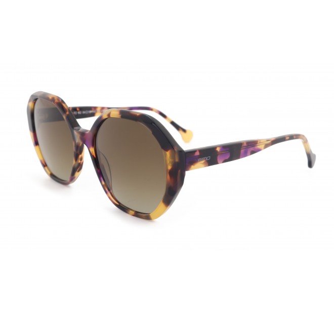 GAFA DE SOL DE FORMA IRREGULAR EN COLOR HAVANA CON TOQUES EN MORADO.