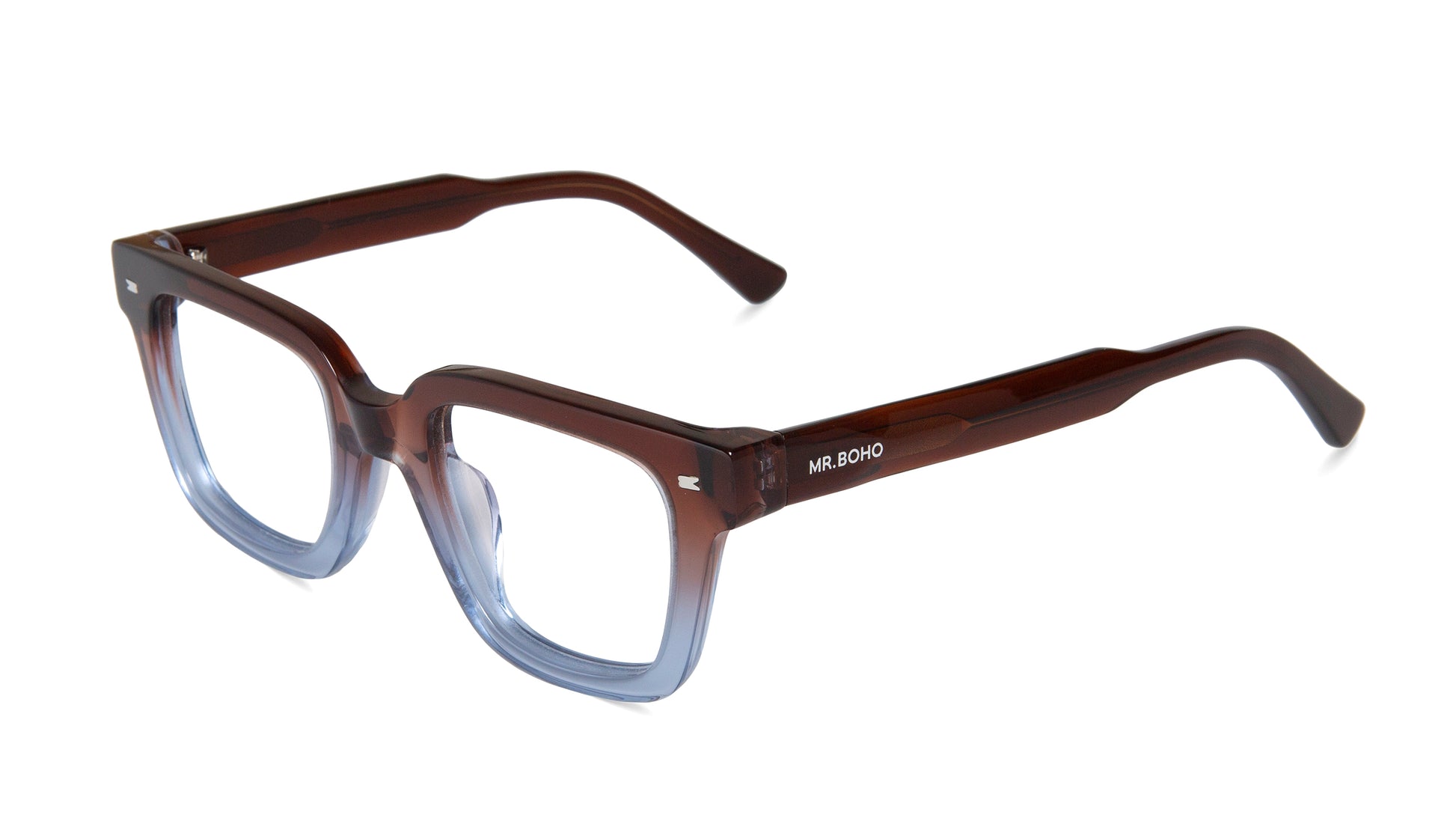 GAFA DE GRADUADO MR BOHO CON FORMA CUADRADA EN DOS TONOS MARRON Y AZUL.