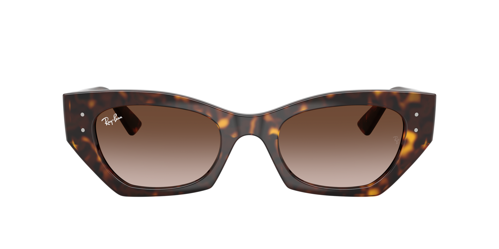 Ray-Ban Zena presentan una montura irregular color habana con lentes marrones degradadas, ofreciendo un look único y elegante. Su acabado pulido realza la elegancia general de estas gafas. Perfectas para cualquier ocasión, estas gafas de sol sin duda llamarán la atención donde quiera que vayas.