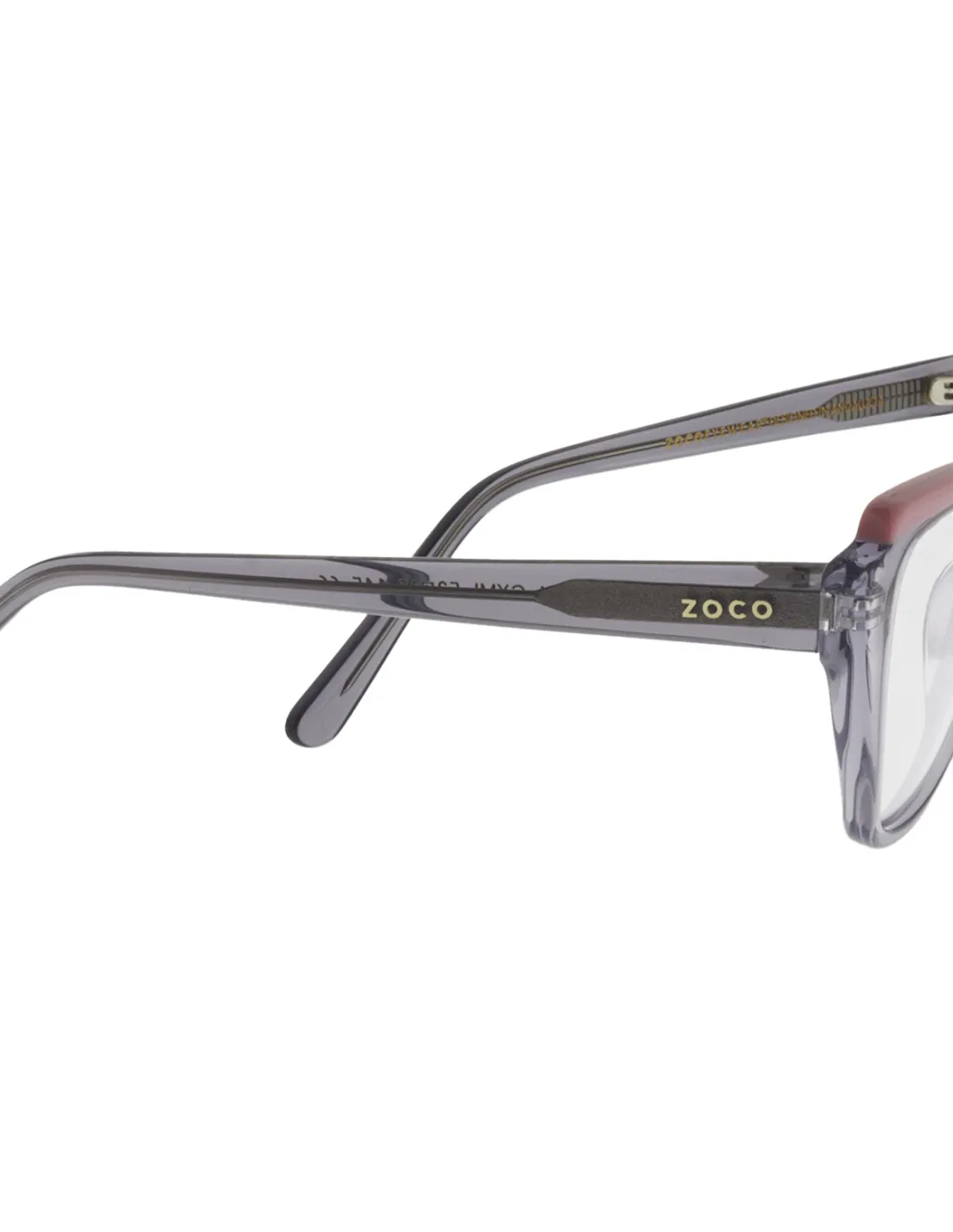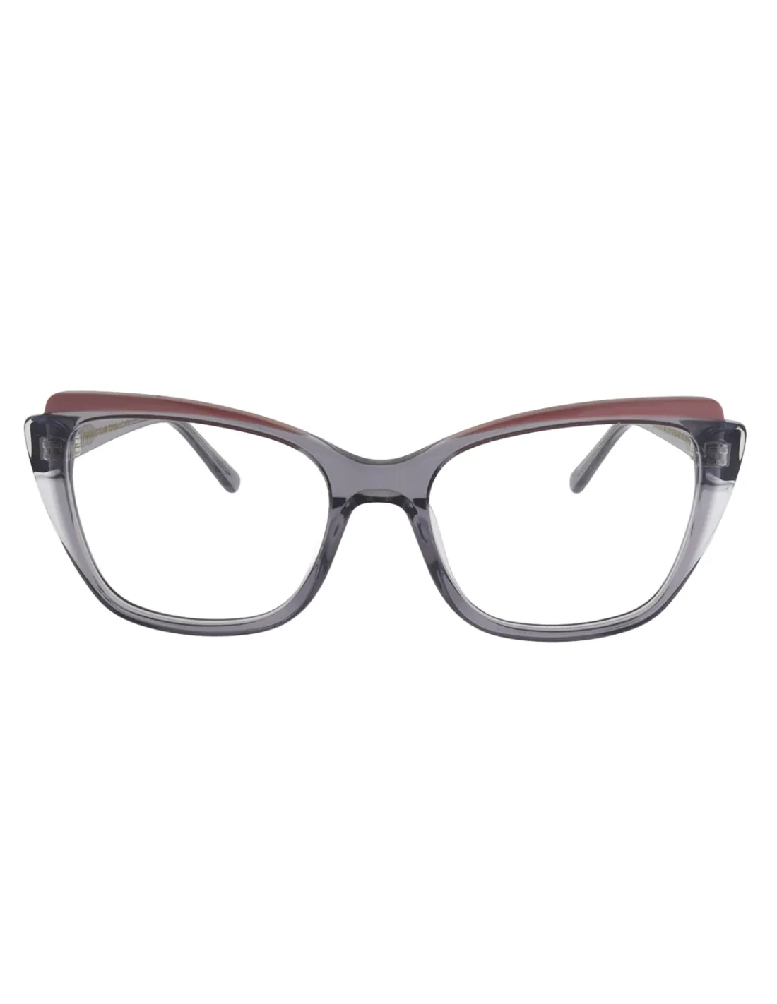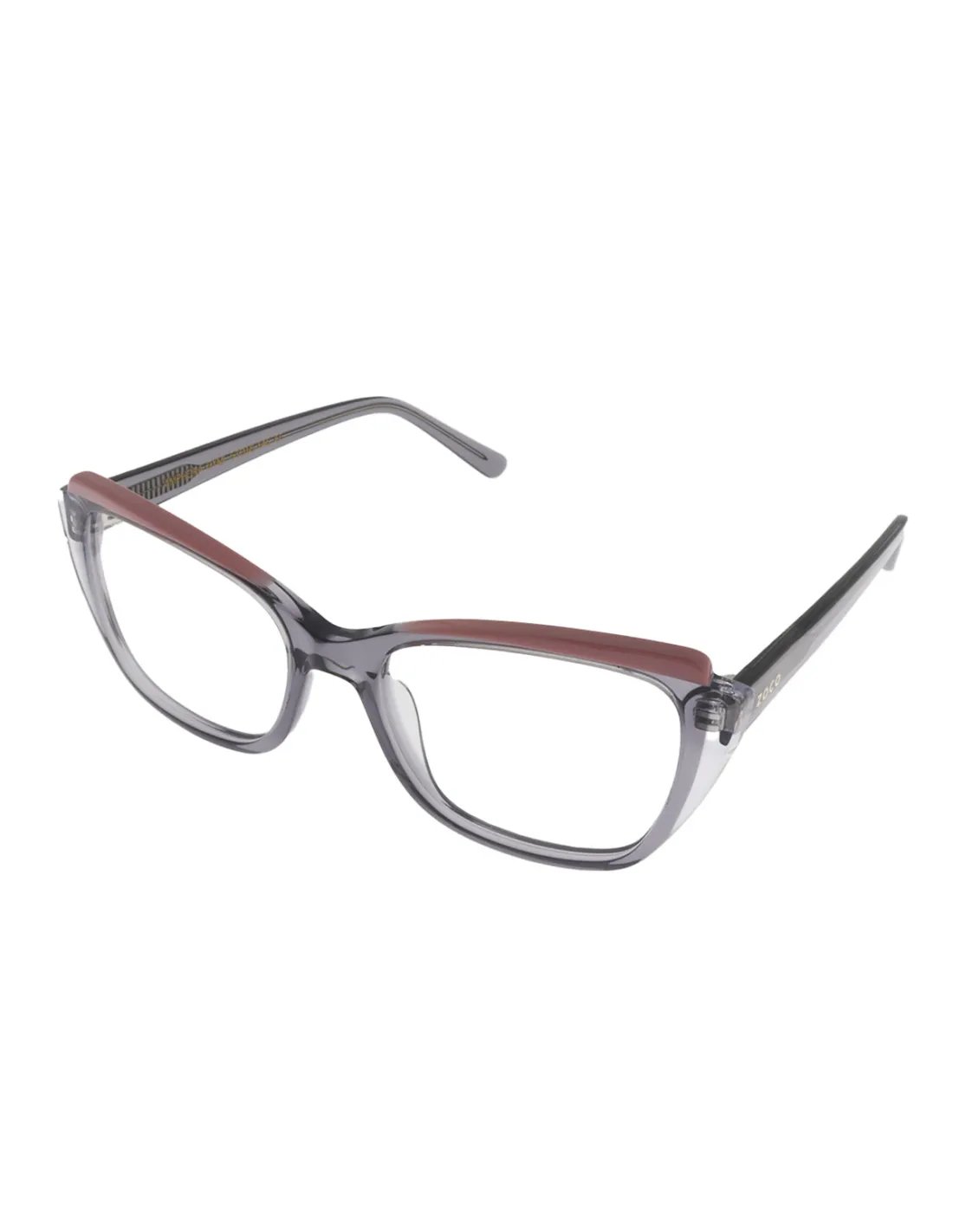Gafas de vista para mujer con forma de antifaz, con perfiles en diferentes niveles, donde destacan sus detalles en color.